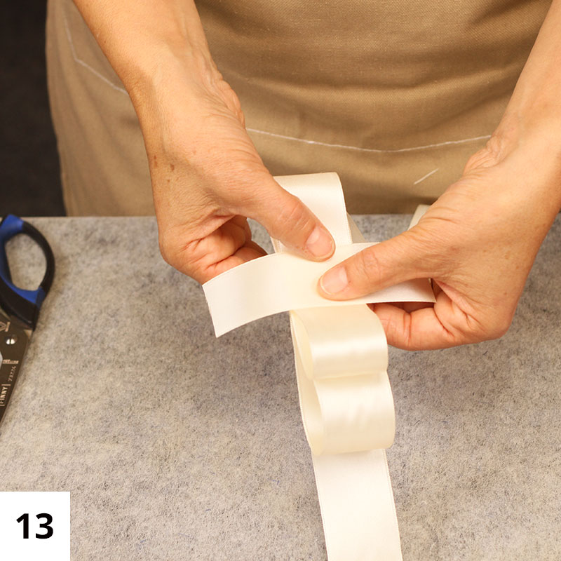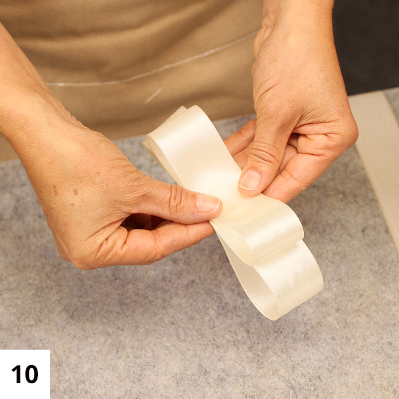 1. To make a premium bow, start with the 20 cm piece of ribbon.
