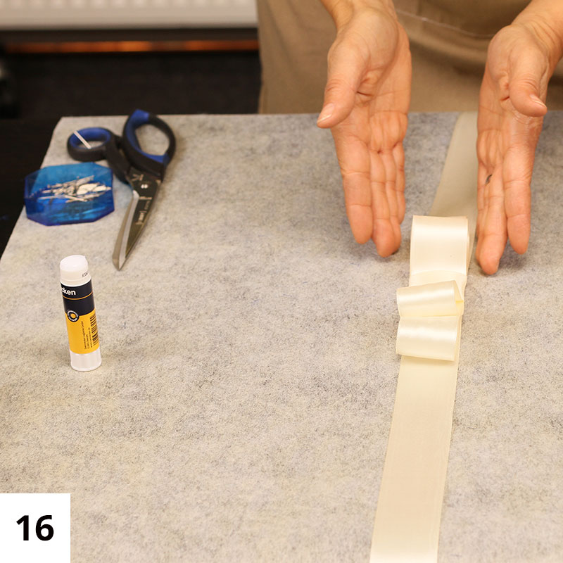17. Simply place it on top and bring the ribbon ends together on the underside.