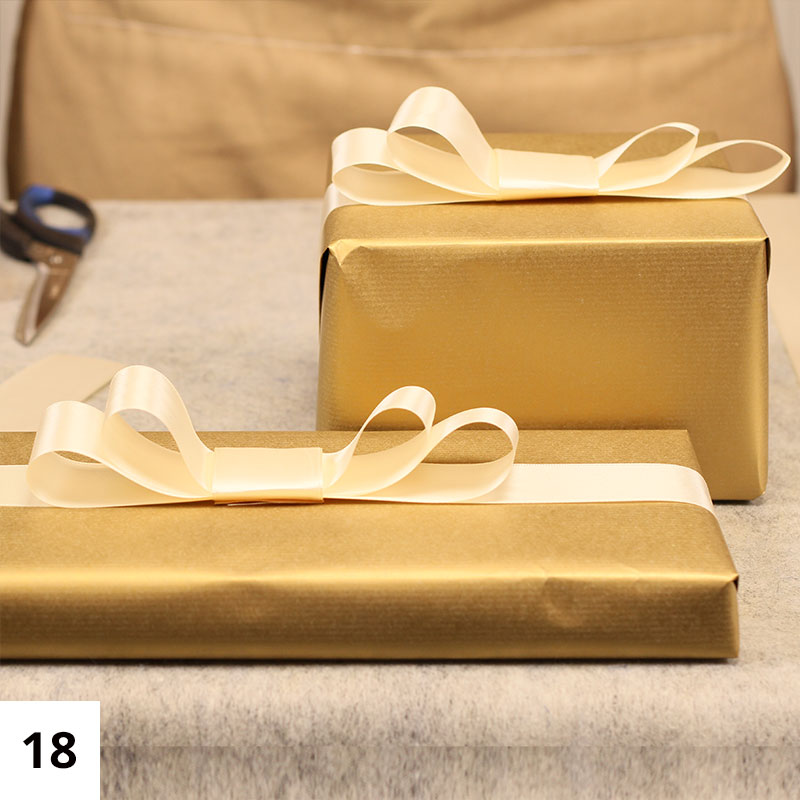The name says it all: the premium bow is exceptionally stylish. Tied in fine satin, it becomes an elegant accessory for your gift. Make sure to use a wide ribbon — the broad band in the centre is, after all, the defining feature of this bow.