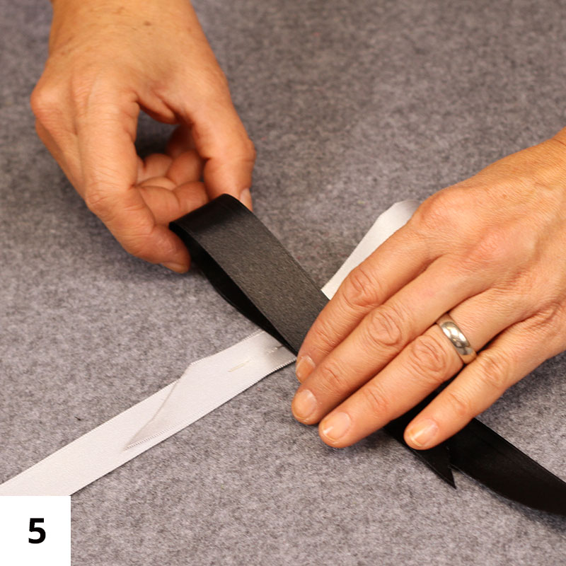 7. To tie the two loops together, thread the tie ribbon between the loops and around the crossing point.