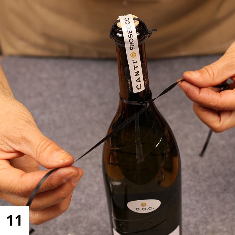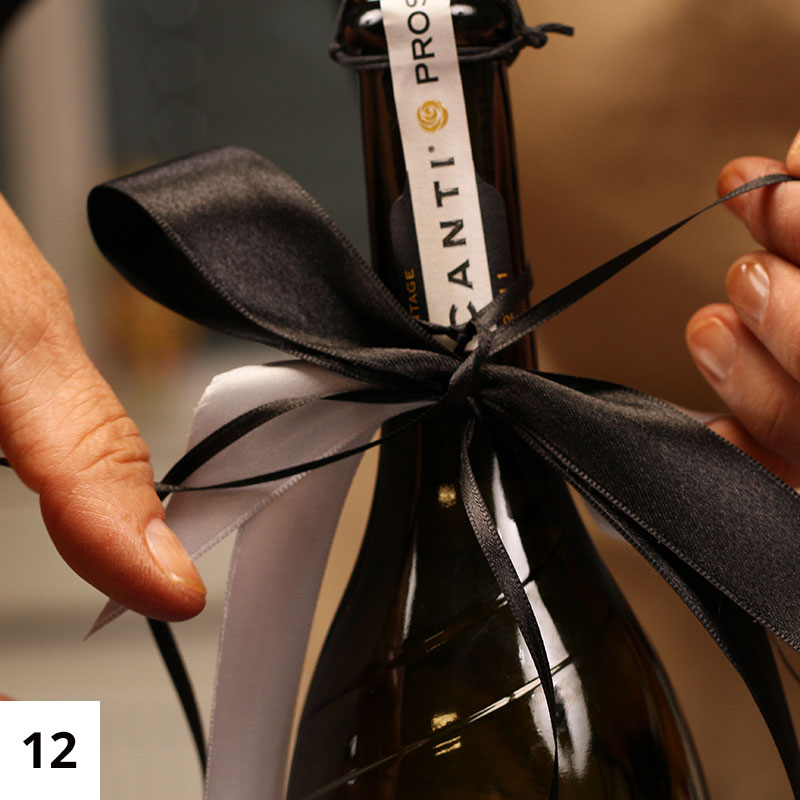 11. The two-loop bow can also be attached directly to a bottle. Form the two loops as described above and pin them together.